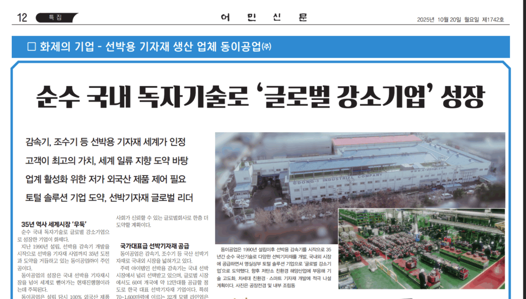 화제의 기업 – 선박용 기자재 생산 업체 동이공업(주)